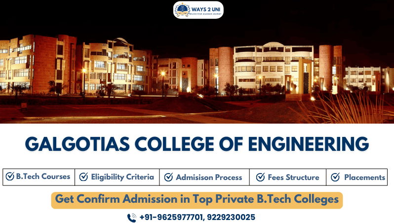 Galgotias College of Engineering, Greater noida is one of India’s top engineering institutions, offering world-class B.Tech programs with outstanding faculty, state-of-the-art infrastructure, and excellent placement opportunities. However, due to tough competition, not all students secure admission through the entrance exam. If you are facing challenges with your rank, don’t worry! Ways2uni helps students secure Direct Admission in Galgotias College of Engineering through the Management Quota admission in galgotias college of engineering. Our team of experienced counselors guides students through the entire admission process, ensuring a smooth and hassle-free experience. For more details and to secure your B.Tech admission at GaNoidaas College of Engineering, Greater noida, contact us at +91 9229230025.