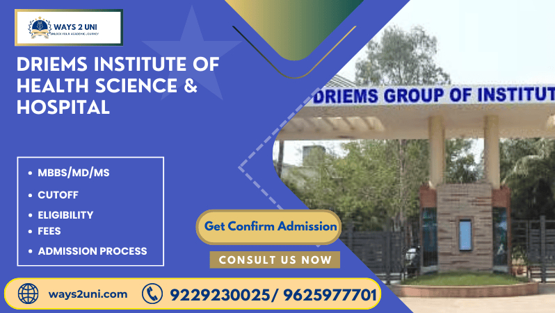 DRIEMS Institute of Health Sciences and Hospital, Kairapari, offers MBBS admissions primarily through NEET-UG scores. For management quota seats, candidates must also qualify NEET-UG. The annual tuition fee for management quota is ₹6,50,000. Additional charges may apply during admission. Students who are unable to meet the required cutoff need not worry. They can also get into this college through management quota and ways2uni will help them obtain a seat by providing full guidance and support.